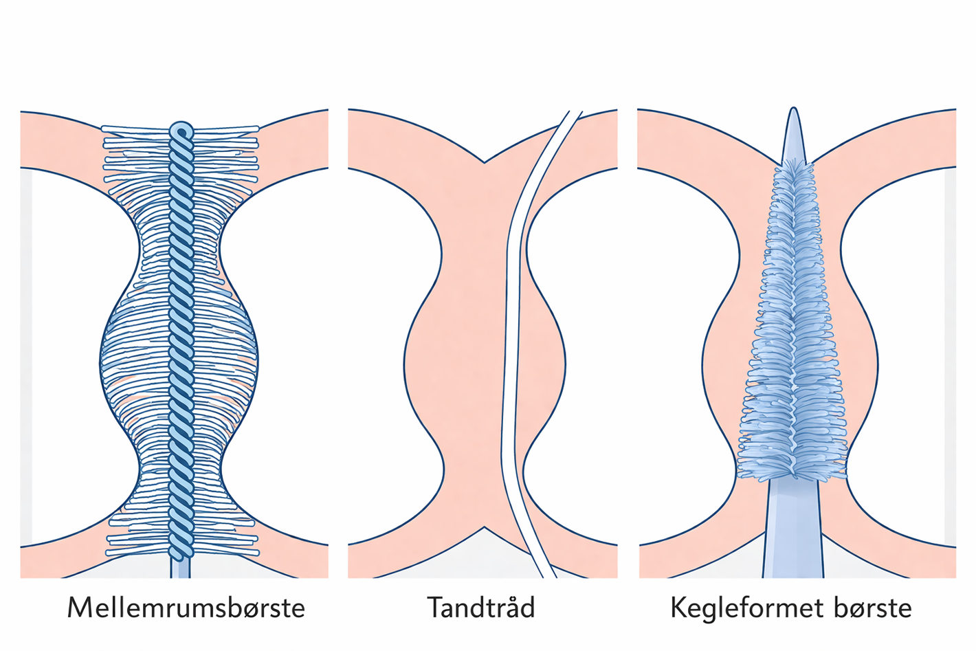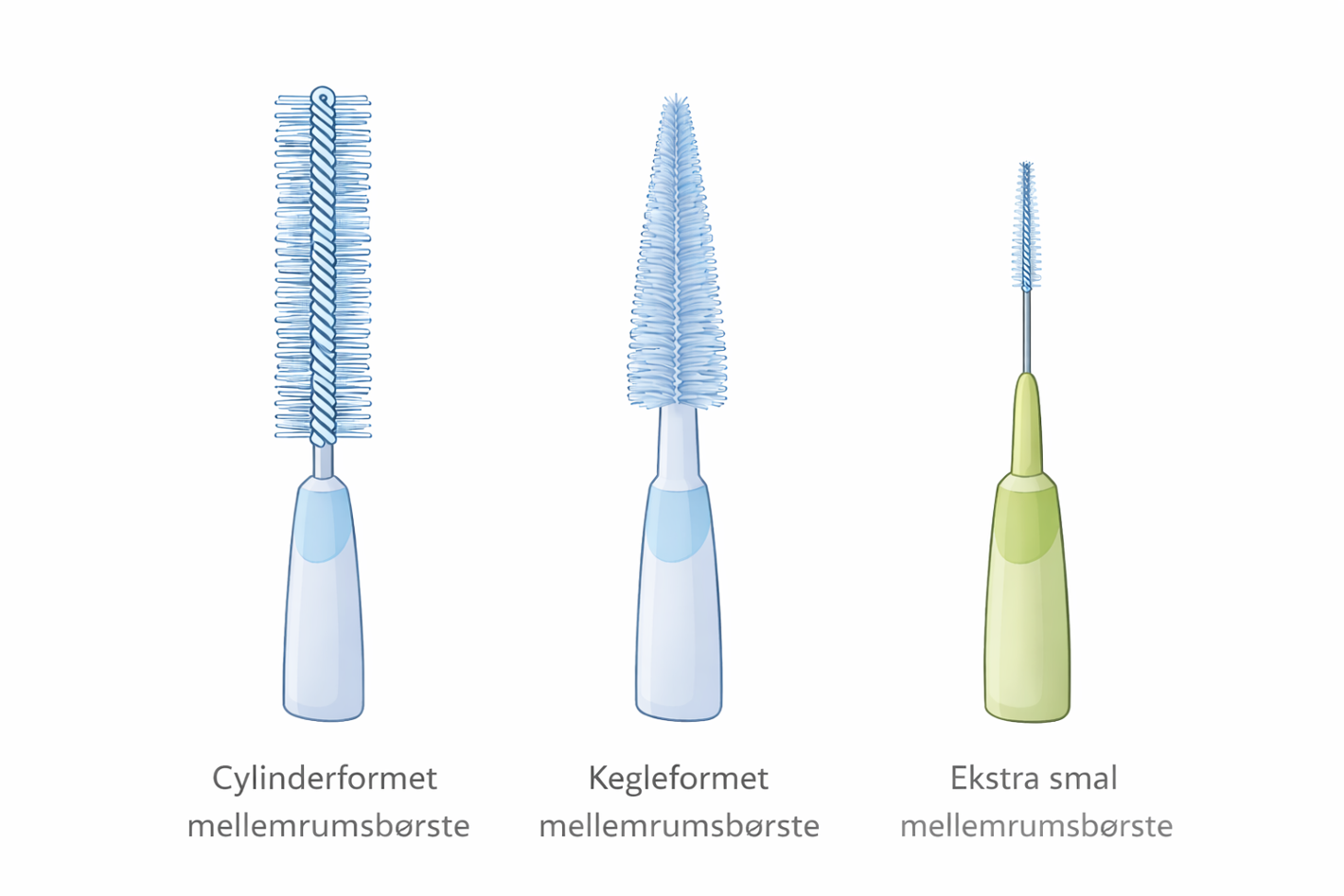 Det anbefales at bruge mellemrumsbørster. Valget af type afhænger af ens tænder og ens mund- og tandsundhed.